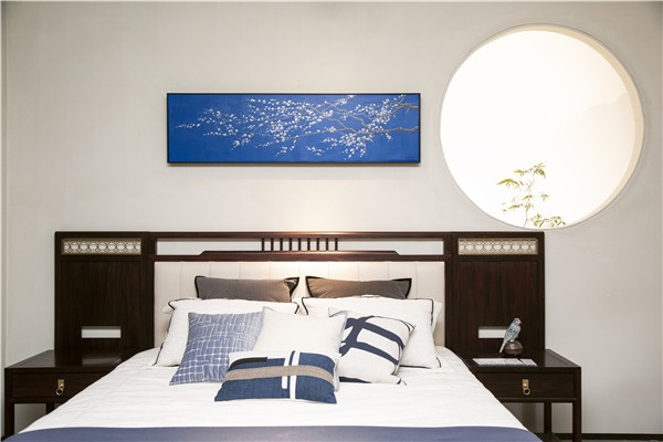 除了利落的直线直角外,新中式家居没有太多曲线条,富含设计或哲学意味,但毫不夸张,给人一种典雅、沉静而内敛的感觉。