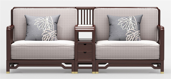 新中式家具总体布局对称均衡,稳健端正,在装饰细节上崇尚自然情趣,花鸟山水,富于变化。