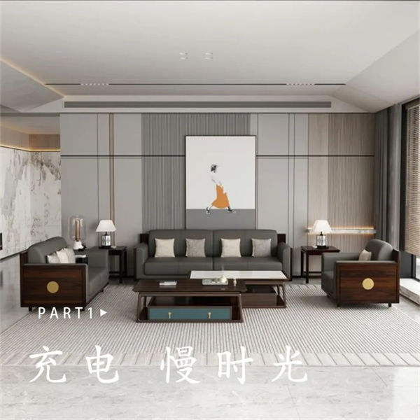 使用灰色皮质沙发,简约大方